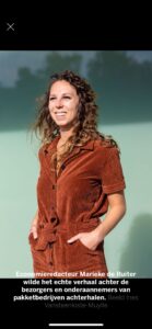 Economieredacteur Marieke de Ruiter schrijft voor De Volkskrant over ontwikkelingen op de arbeidsmarkt. Afgelopen jaar ging ze voor haar onderzoek naar misstanden in de pakkettenbranche zelf aan de slag als pakketbezorger.